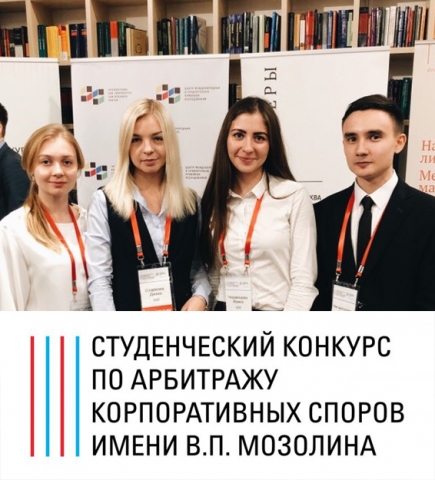 8-9 декабря 2018 года состоялся студенческий конкурс по арбитражу корпоративных споров им. В.П. Мозолина. Конкурс проводится второй год подряд и собирает участников со всей страны. В 2018 году на конкурс зарегистрировалось 90 команд из ведущих вузов Москвы, Санкт-Петербурга, Екатеринбурга, Томска, Владивостока, Оренбурга, Казани, Перми, Челябинской области, Нижнего Новгорода.