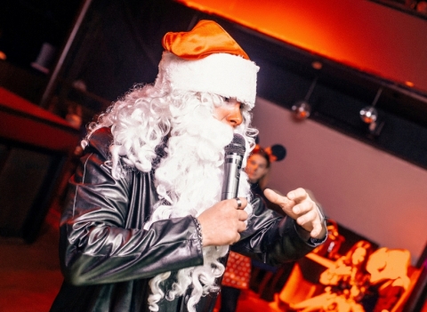 Профсоюзный комитет студентов подготовил для ребят яркий флешмоб, а рокер-Дед Мороз со своей внучкой Снегурочкой интересные конкурсы и подарки, студенческое радио «Твой курс» поздравили присутствующих исполнением новогодней песни. Обучающимся предстояло отгадывать новогодние песни, фильмы, водить хоровод, участвовать в конкурсе «селфи» и много веселиться!