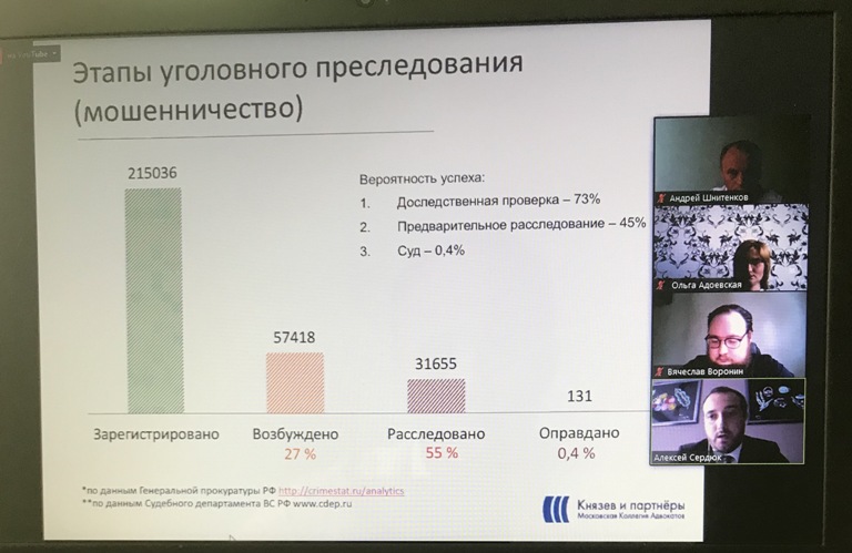26 мая 2020 г. на платформе Zoom был проведен онлайн круглый стол "Уголовно-правовое воздействие на бизнес", организованный НОЦ применения уголовного права Университета имени О.Е. Кутафина (МГЮА) совместно с цифровой платформой для работы с обращениями предпринимателей «ЗАБИЗНЕС.РФ».