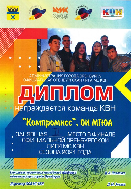11 декабря 2021 года команда КВН "Компромисс", представляющая Оренбургский институт МГЮА, сошлась в юмористической баталии на сцене ДК Молодёжный.