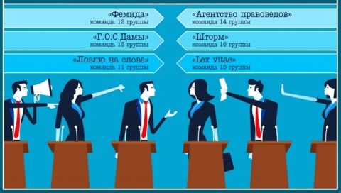 В обсуждении первой темы – «После окончания вуза из Оренбурга нужно уезжать» –приняли участие команда 14 группы «Агентство правоведов»(сторона «ЗА») и команда 12 группы «Фемида» (сторона «ПРОТИВ»). По итогам ожесточённой схватки с минимальным разрывом победила команда «Фемида». Лучшим спикером утверждающей стороны члены жюри признали Даниила Юртаева, а лучшим спикером отрицающей – Анаиду Петросян.